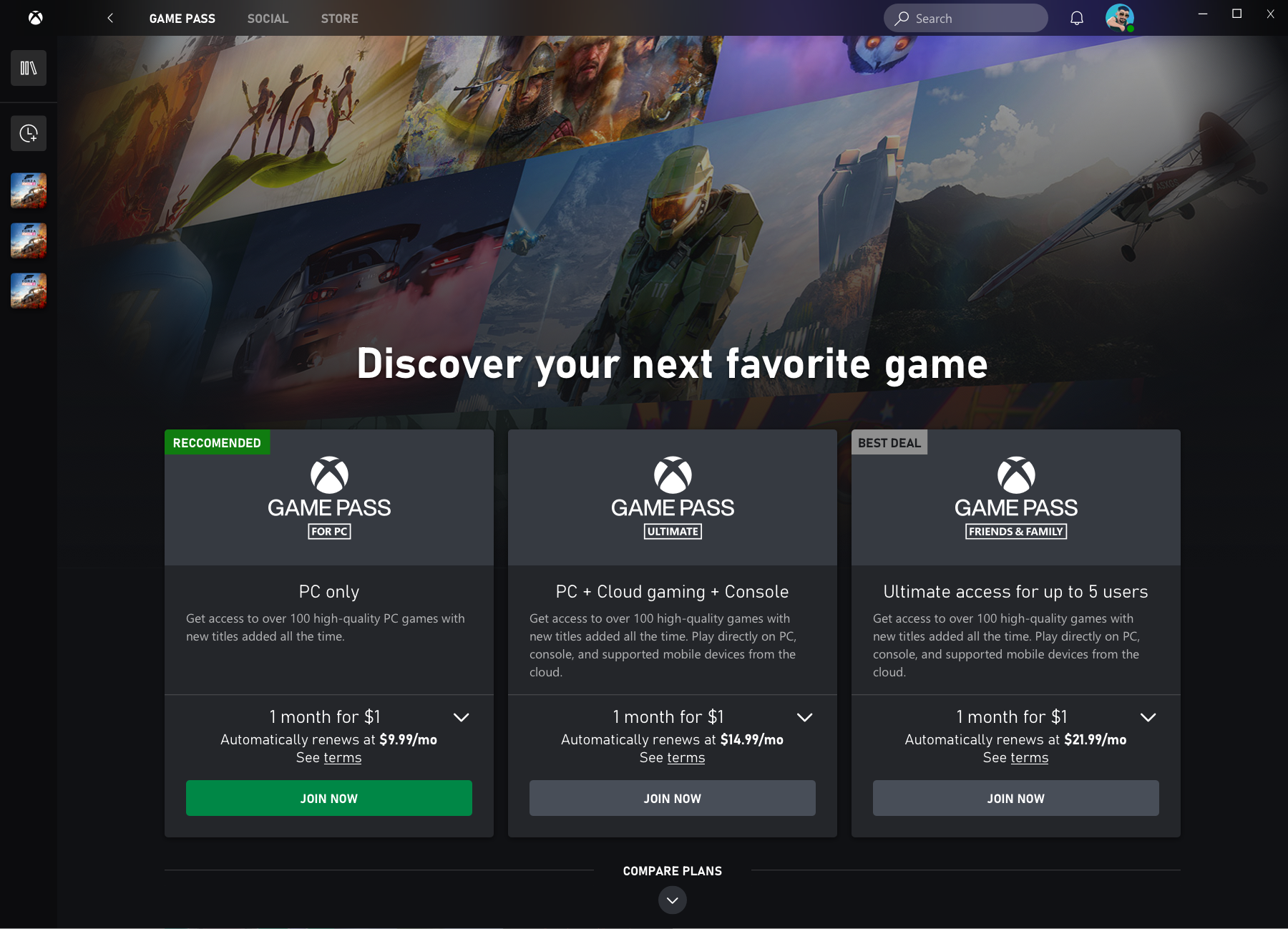 During a reorg where PC gaming was the new growth area I moved from Halcyon to Garrison (aka PC Game Pass app) where I currently work today. I’ve touched a handful of areas of the app, but my main feature ownership area is PDP (Product Detail Page) and Subscription