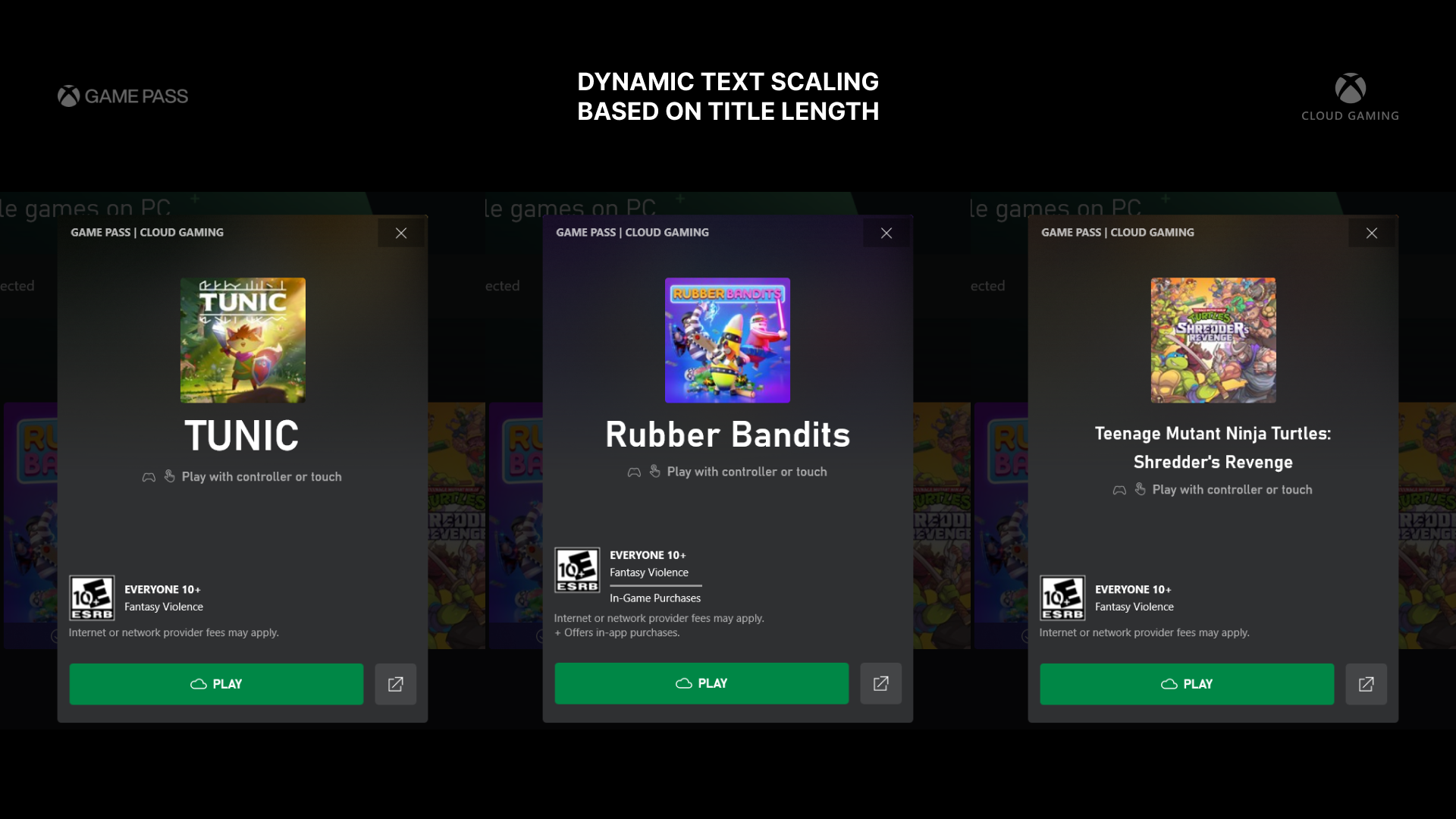 Over on Game Pass Mobile I had already shipped a feature with the updated subscription cards so it was natural for me to transition into Garrison (PC Game Pass app) with similar screens but also updating and improving the experience