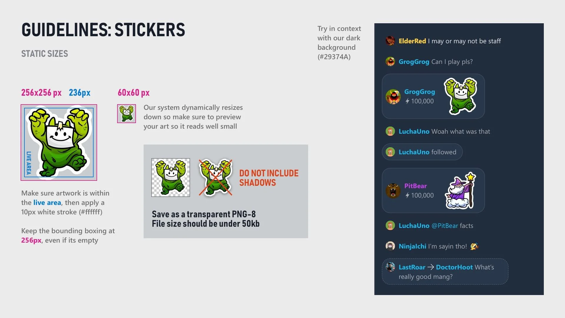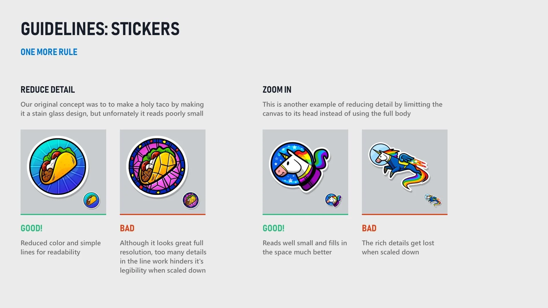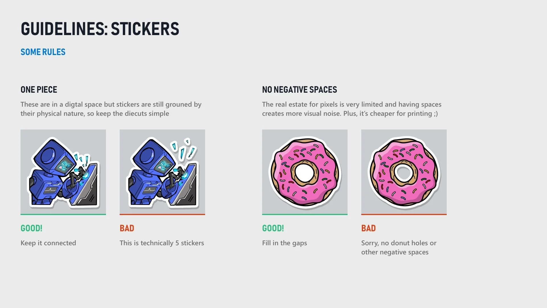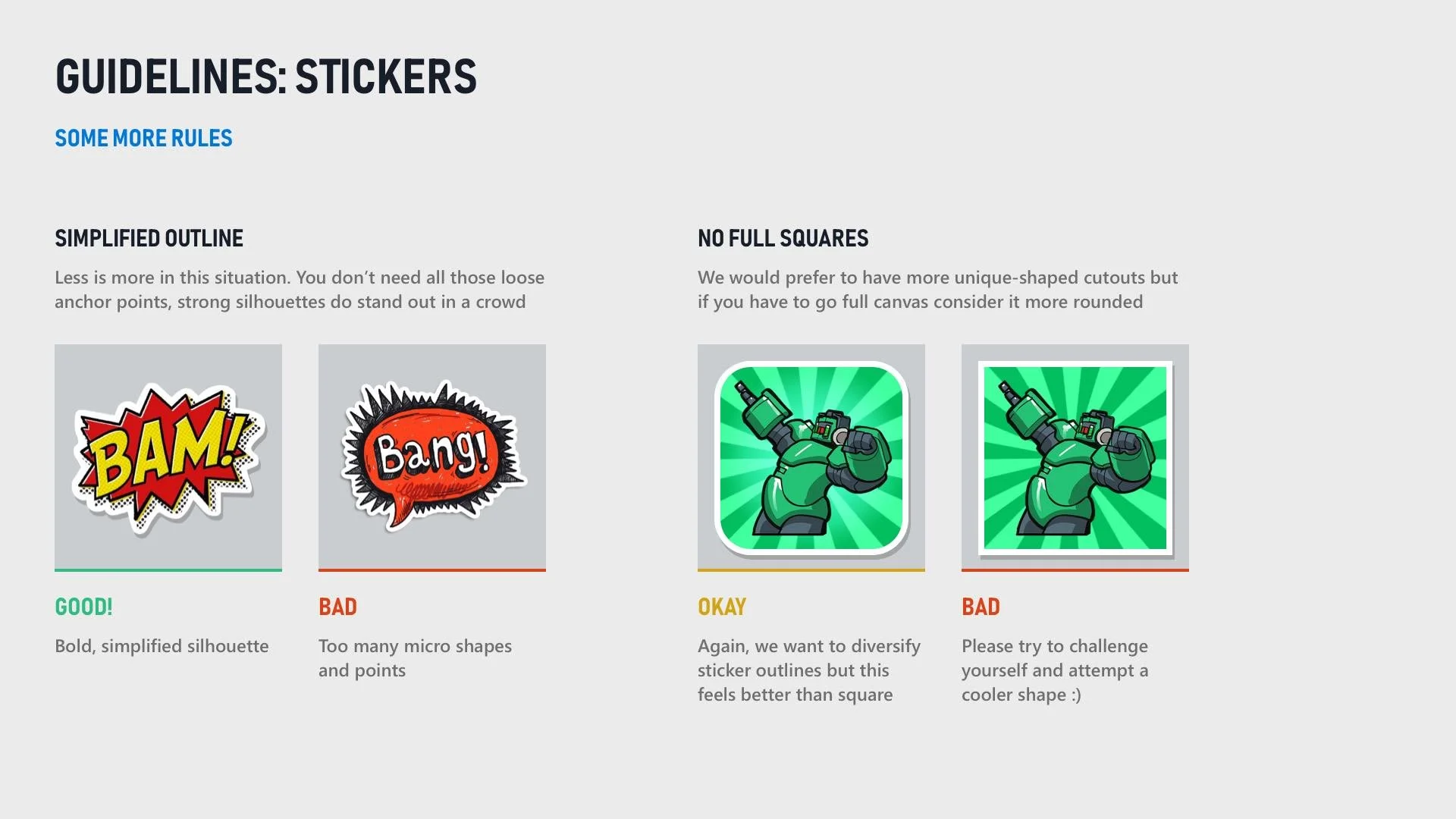 To help maintain consistency for future sticker packs and working with game publishers, I created rules and guidelines to help streamline the creation process